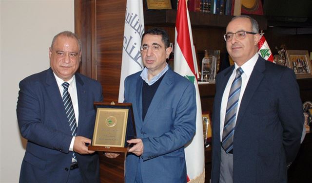 زار رئيس الجمعية اللبنانية لتقدم العلوم ومستشار رئيس جامعة الروح القدس - الكسليك للعلاقات مع المؤسسات الرسمية والإدارات العامة البروفسور نعيم عويني وزير الصناعة الدكتور حسين الحاج حسن في حضور المدير العام لوزارة داني جدعون.