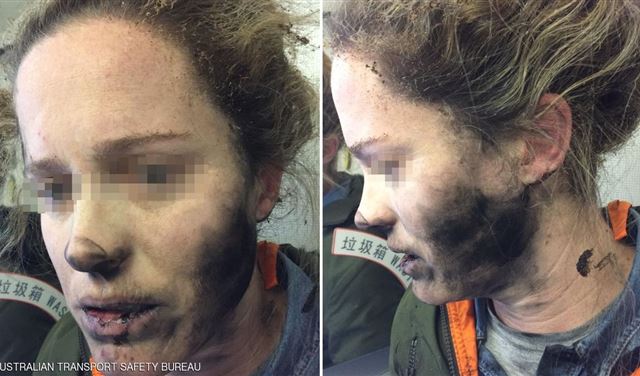 ووفي بيان لمكتب سلامة النقل الأسترالي، قالت المرأة التي لم يتم الكشف عن اسمها إنها سمعت صوت انفجار، وأضافت: "شعرت فجأة بحرقة في وجهي، فنزعت السماعات بسرعة وألقيتها على الأرض.. لقد كانت تحترق".