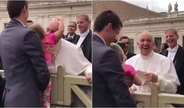 وقال سكوت، والد الطفلة، لحظة خطف ابنته القلنسوة عن رأس البابا بسرعة كبيرة: "إنها تفعل ما يحلو لها".