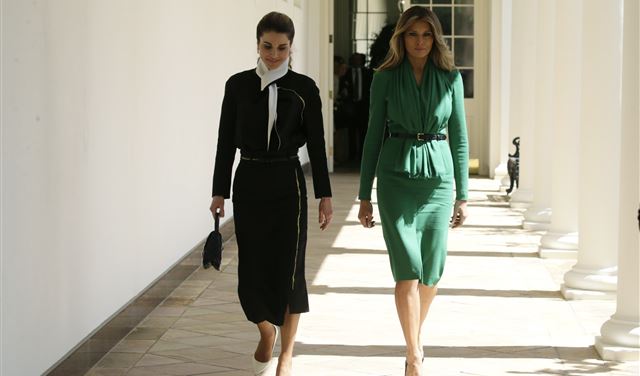 تنزهت السيدة الأميركية الأولى ميلانيا ترمب مع الملكة رانيا العبدالله، عقيلة العاهل الأردني في الجناح الغربي للبيت الأبيض الأربعاء. ورصدتهما عدسات الكاميرا تتنزهان داخل البيت الأبيض قبيل المؤتمر الصحافي للملك عبد الله والرئيس الأميركي دونالد ترمب.
