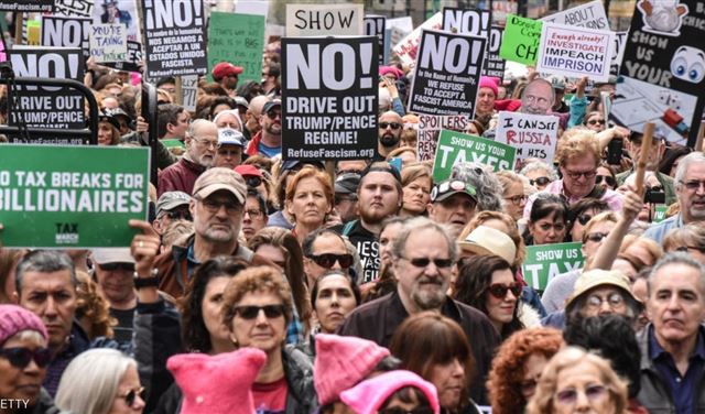 وشارك عشرات الآلاف في مسيرة في مانهاتن وعشرات المدن الأميركية السبت لمطالبة الرئيس دونالد ترامب بالكشف عن سجلاته الضريبية ولتفنيد مزاعمه بأن المواطنين لا يعنيهم هذا الأمر.