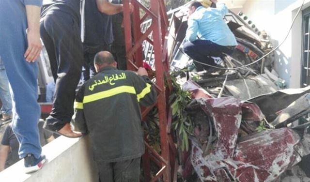 وادى الحادث الى تضرر عدد من السيارات التي كانت متوقفة، وتعمل فرق الدفاع المدني والصليب الاحمر على سحب السائق من داخل البيك اب، وتواجه صعوبة في ذلك.