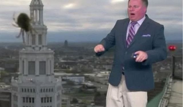 ونشر موقع "ديلي ميل" فيديو يظهر مذيع نشرة الطقس الشهير "بارتريك هامر" على شاشة قناة "WGRZ" الأمريكية في نيويورك، وقد أصيب بحالة من الذعر على الهواء أثناء تقديمه النشرة، بعدما فوجىء بعنكبوت يبدو على الشاشة ضخماً بسبب قربه من الكاميرا، ليقفز المذيع في الهواء فجأة ويصاب بحالة من الرعب أمام مشاهدي القناة قائلاً "ما هذا ؟" .