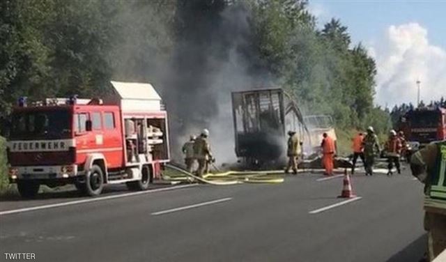 اصطدمت حافلة ركاب بشاحنة، صباح الاثنين، جنوبي ألمانيا، مما أدى إلى إشعال النيران في الحافلة، ومقتل 17 شخصا وإصابة 31 آخرين، وفقا لصحيفة "فرانكن بوست" الألمانية.