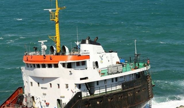 وكانت الناقلة "ليوناردو" التي ترفع علم منغوليا ويبلغ طولها 114 مترا ترسو قبالة ساحل ميناء كيليوس عندما بدأ جسم السفينة ينبعج قبل أن تنشطر إلى جزأين.