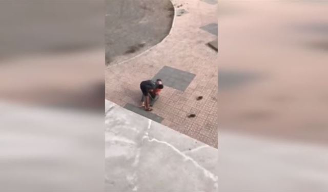 وبين الفيديو المصور الذي التقط من سطح إحدى البنايات، شابا في مقتبل العمر يحمل سكينا كبيرا بين يديه، مهدّدا باستخدامه ضد رجل مسنّ، بعد أن قام بإسقاطه أرضا في أحد الشوارع الخالية من المارة.