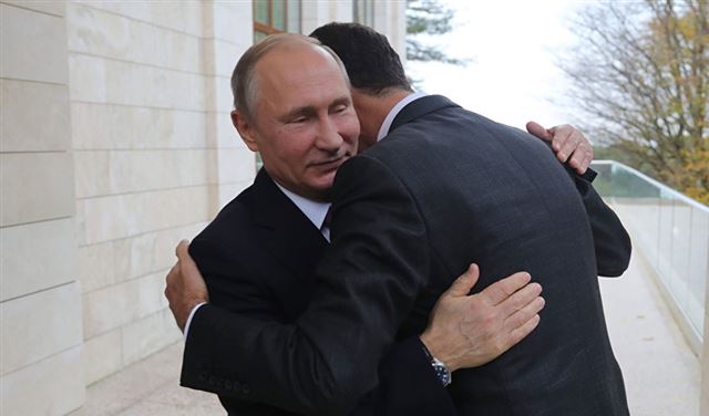 الرئيس السوري بشار الأسد أعرب للرئيس الروسي فلاديمير بوتين عن تهاني وامتنان الشعب السوري على التمكن من الحفاظ على وحدة أراضي بلاده واستقلالها.