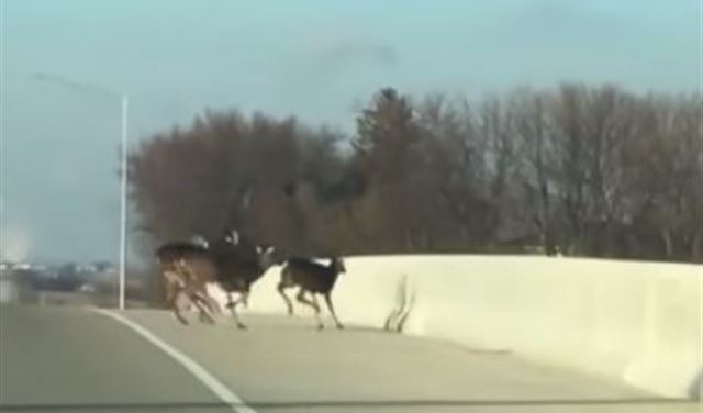 في مشهد مريع ومؤسف، أظهر تسجيل مصور نشر على موقع يوتيوب الإلكتروني، مجموعة من الغزلان تقفز من فوق جسر شاهق الارتفاع على مرأى من مستخدمي الطريق السريع الذي يقع في اطراف ولاية ميتشيغان الأميركية.