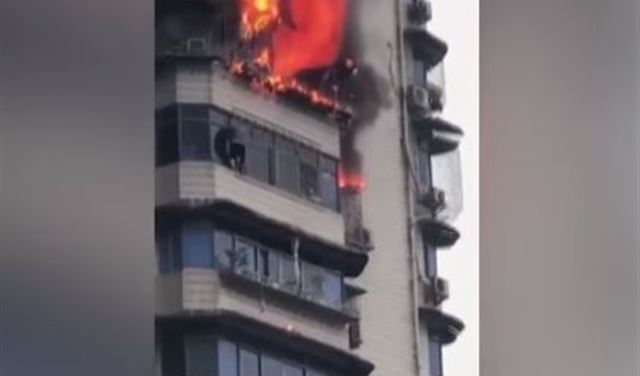 نجا صيني من الموت بأعجوبة، بعد اندلاع حريق ضخم في منزله، ما دفعه إلى التدلى من نافذة في الطابق 24 من المبنى، محاولاً دخول منزل يقع في طابق أسفل.