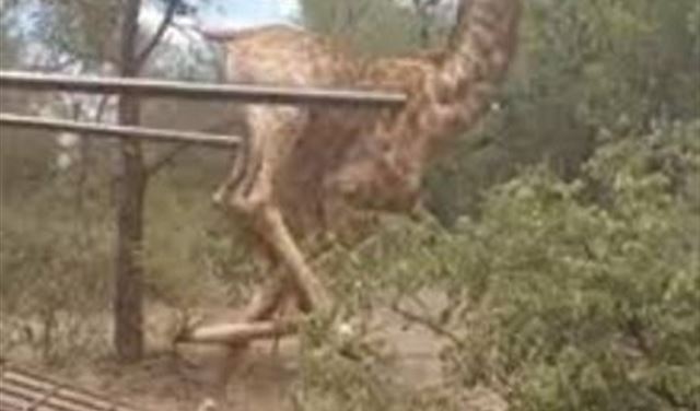 ويظهر الفيديو المتداول تشابك أرجل الزرافة، أثناء خروجها من القفص إلى الأدغال البرية، ووقوعها بشكل مروع على الأرض.