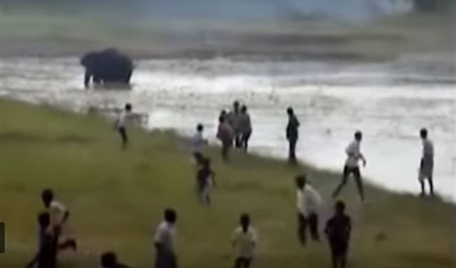 ويظهر الفيديو كيف يهرب السكان من الحيوان الغاضب، ولكن لم يتمكن أحد المزارعين من الهرب، حيث هاجمه الفيل ورماه أرضا وبدأ بضربه بأنيابه الحادة حتى الموت.