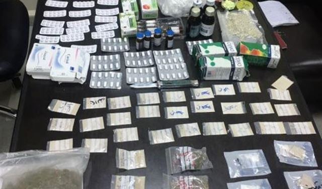 /222/غ قائم من مادة الماريجوانا، /156/غ قائم من مادة حشيشة الكيف، /143/غ قائم من مادة السيلفيا، /59/غ قائم من مادة الهيرويين، /26/غ قائم من مادة ال MDMA، /6,5/غ قائم من مادة الكوكايين، /1210 / حبات كبتاغون، 645 حبة ECSTASY ، /298/ حبة ترامادول، / 80/ حبة كاريزول، /11/ عبوة كيتامين و/6/ زجاجات كناكيمو.