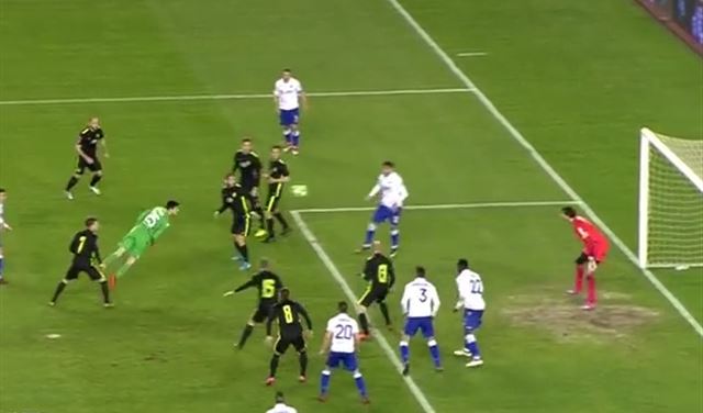 وعندما كانت المباراة تدخل في الرمق الأخير والنتيجة تشير للتعادل 2-2، شارك الحارس الشاب (21 عاماً) في الهجوم مع فريقه إثر عرضية داخل المنطقة ليحوّل الكرة برأسه في الشباك.