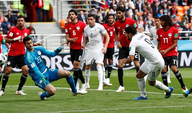 #سواريز يصطدم بحائط الفراعنة ????#beINRussia #beINFWC pic.twitter.com/sXprPOhRtJ