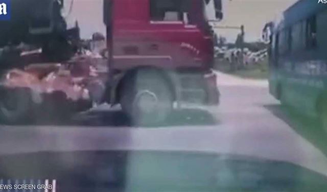 وشوهدت الشاحنة، التي كانت تحمل الإسمنت، وهي تضرب بكل قوتها الجانب الأيسر من الحافلة في مقاطعة شاندونغ الصينية، لكن جميع ركاب الحافلة نجوا بأعجوبة من موت محقق.