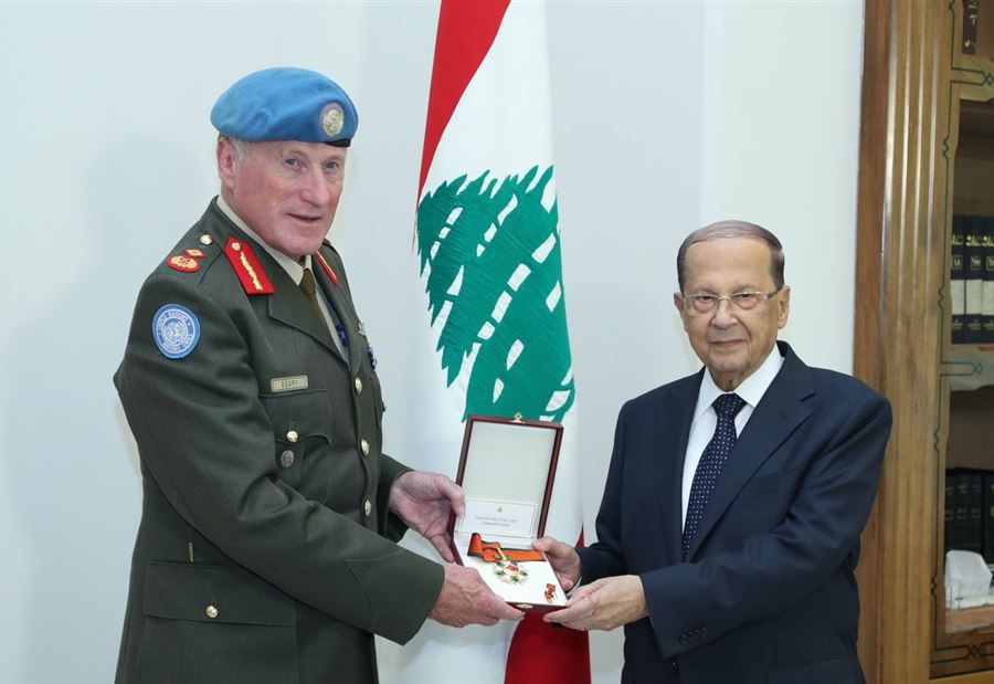 كلام الرئيس عون جاء خلال استقباله قبل ظهر اليوم في قصر بعبدا، قائد اليونيفيل الجنرال مايكل بيري في زيارة وداعية لمناسبة انتهاء مهامه في لبنان التي استمرت سنتين.