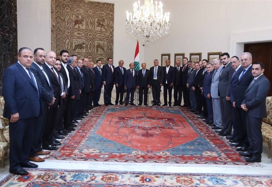 استقبل رئيس الجمهورية ميشال عون في بعبدا، وفد جمعية منشئي وتجار الابنية برئاسة ايلي صوما، الذي أطلعه على أوضاع قطاع البناء، مؤكدا "ثقة أهل القطاع بحكمة الرئيس وقدرته على معالجة الاوضاع الاقتصادية الراهنة".