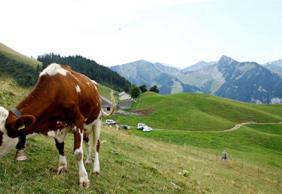 وقالت السلطات إن نحو 40 ألف بقرة ترعى بالصيف في مراع مرتفعة بولاية فو كونتون بغرب سويسرا وتحتاج كل منها ما يصل إلى 150 لترا من الماء يوميا.