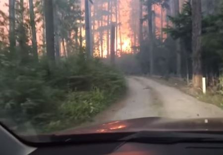 وقرر الأب وابنه التخييم في محمية غليشر ونصبا خيمتهما وسط الغابة، إلا أن النيران بدأت بالإندلاع في اليوم التالي لتخييمهما، بسبب صاعقة برق ألهبت الغابة، فركبا سيارتهما، وبعد أن قطعا مسافة شرعا بتصوير النيران من حولهما.