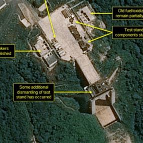 وذكر مركز 38 نورث للأبحاث، أن صورا التقطتها الأقمار الصناعية الأسبوع الماضي، تشير إلى أن بيونغ يانغ توفقت عن تفكيك موقع لاختبارات محركات الصواريخ بمحطة سوهاي، في الربع الأول من آب الماضي.