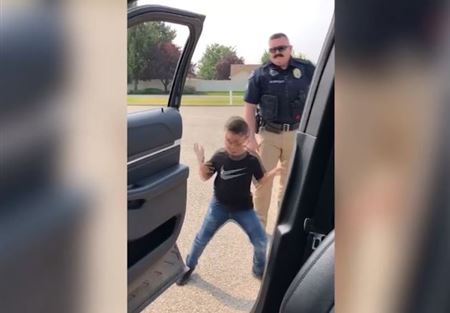 وقامت أم بقيادة سيارتها ببطء في شارع خال بمدينة نامبا في ولاية أيداهو الأميركية، فيما أدى ابنها حركات راقصة مع الأغنية، لتظهر فجأة سيارة شرطة يقف بجوارها شرطي.