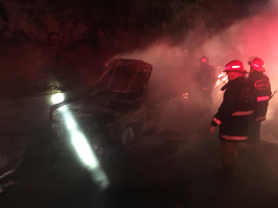 وتداول ناشطون عبر مواقع التواصل الإجتماعي، فيديو يظهر السيارات التي التهمتها النيران، وقيام عناصر من الدفاع المدني بإخمادها.