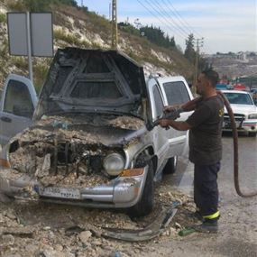 اندلعت النيران في سيارة رباعية الدفع تابعة للمواطنة خ.ح من بلدة خربة سلم، عند جسر الصرفند على اوتوستراد الزهراني.