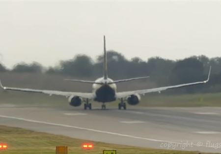 تناقل ناشطو مواقع التواصل مقطع فيديو لطائرة من طراز "رايان إير" أثناء إقلاعها وسط عاصفة قوية في مطار برمينغهام في بريطانيا.