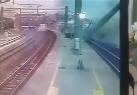 ويرصد الفيديو، الذي التقط بكاميرات مراقبة، لحظة خروج القطار عن السكة وهو يسير بسرعة هائلة، الأمر الذي أدى إلى انقلابه وتحطم مقطورات عدة.