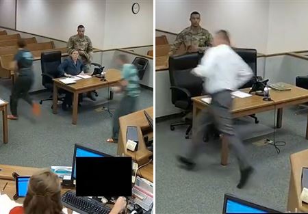 ويُظهر فيديو، التقطته كاميرات مبنى المحكمة، رد الفعل السريع للقاضي، بوزارد، الذي قرر مطاردة المتهمين بنفسه فخرج في إثرهما مسرعا، ثم نزل وراءهما على الدرج إلى الطوابق السفلية.
