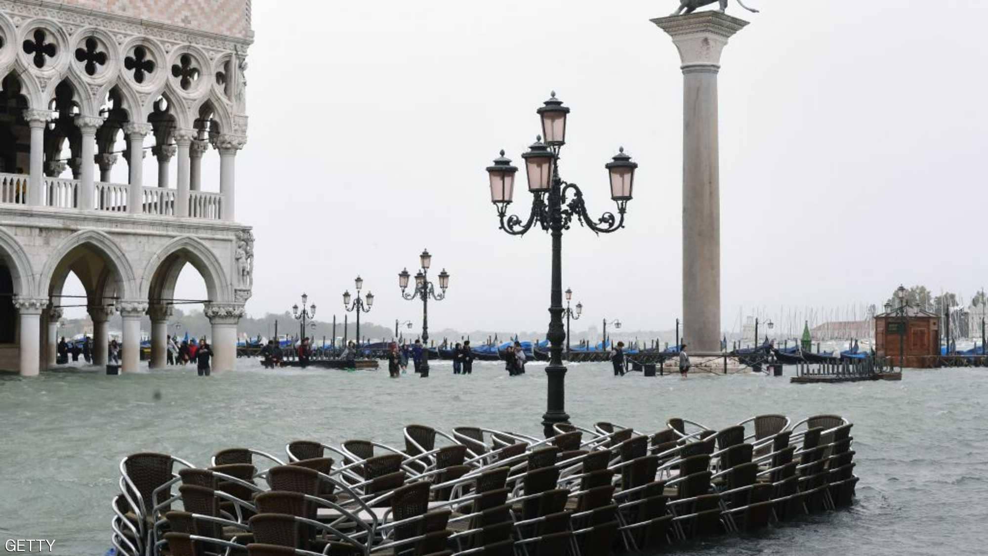 وذكرت السلطات المحلية أن "المياه المرتفعة" وصلت الى 156 سنتمترا بعد الظهر، بحيث لم تكف المنصات الخشبية التي تضعها السلطات في الممرات الرئيسية في المدينة لضمان عبور السياح بأمان.