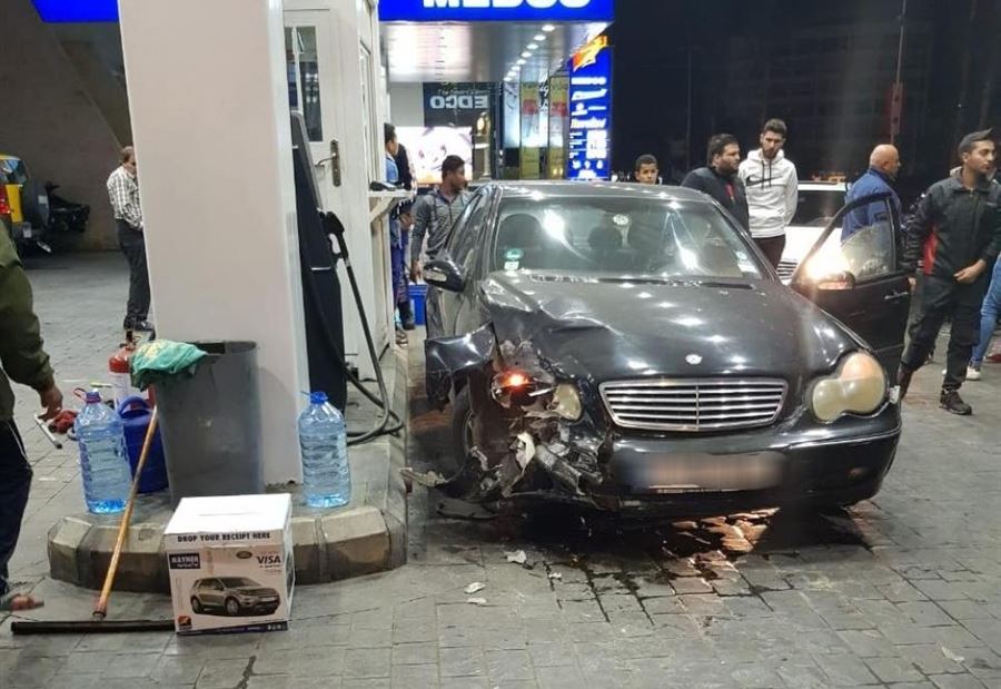 فقد سائق مرسيدس سوداء اللون السيطرة على سيارته بعدما إنفجر احد إطاراتها ما ادى الى اقتحامها محطة لبيع الوقود على الاوتوستراد الشرقي لمدينة صيدا.