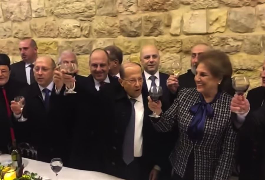 وأنشد الرئيس عون مع المشاركين في القداس الإحتفالي مقطع الأغنية والتي تقول: ع اسمك غنيت ع اسمك رح غني..و احمل بإيدي كاسك المليان..أرفعو لفوق لمطرح البيوقف الزمان...و أسكر بأسمك مجد يا لبنان".