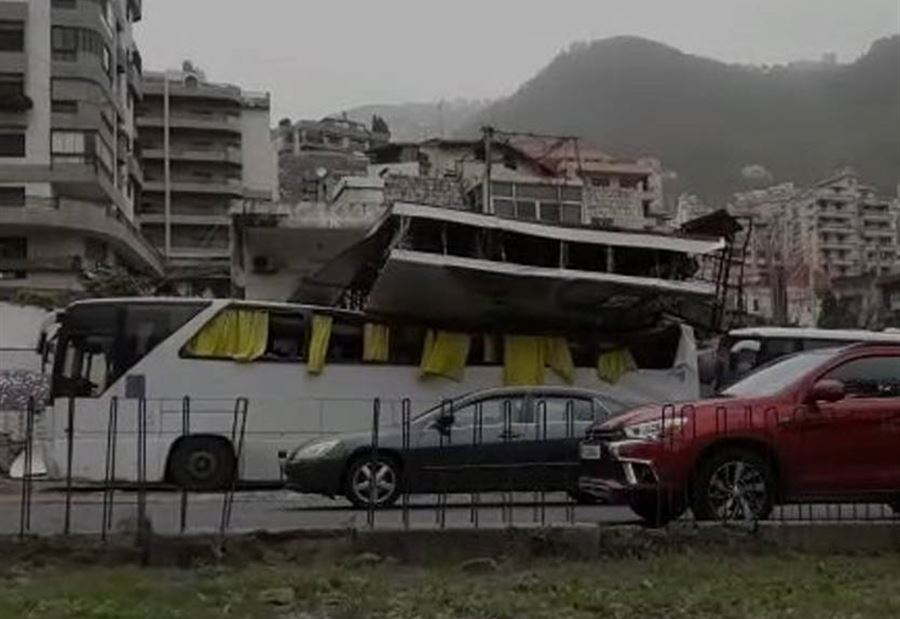 سقطت لوحة إعلانات على باص متوقف على جانب الطريق في المسلك الشرقي من أوتوستراد جونية، وذلك بسبب قوة الرياح. وقد اقتصرت الأضرار على الماديات.