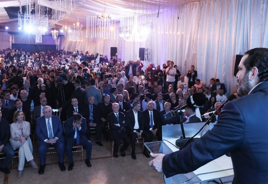 كلام الرئيس الحريري جاء خلال مهرجان لكوادر الماكينة الانتخابية لتيار المستقبل أقيم في فندق "كواليتي إن" بحضور المرشحة ديما جمالي ونواب طرابلس والوزير السابق اللواء أشرف ريفي وشخصيات.