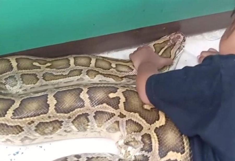 أظهر مقطع فيديو نشرته صحيفة "ديلي ميل" البريطانية، فتاة صغيرة تبلغ من العمر 3 سنوات، وهي تعالج أفعى عملاقة يصل طولها لـ15 قدما.