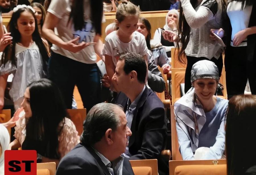 حضر رئيس النظام السوري بشار الأسد وعقيلته أسماء، الخميس، تخرج ابنهما "كريم"، وابنتهما "زين" من إحدى المراحل الدراسية، في حفل أقيم بدار الأوبرا في دمشق.