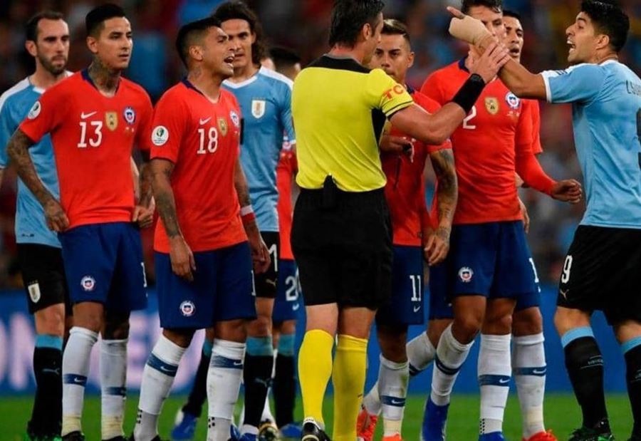 وفي وقت لاحق من مباراة كوبا أميركا، أثار سواريز جدلا جديدا بعدما طالب الحكم بطرد غونزالو خارا مدافع تشيلي بعدما تدخل اللاعب المنافس لإسقاط مشجع اقتحم الملعب.