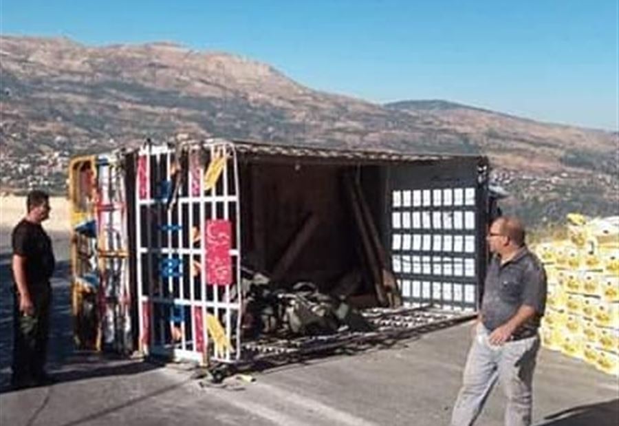 انقلاب شاحنة متوسطة الحجم من نوع تويوتا محمّلة بالموز من البقاع على طريق بشري-الأرز.