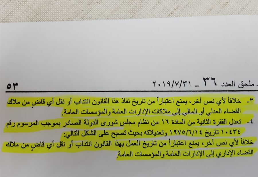 بعدما منع قانون الموازنة العامة بقاء القضاة الإداريين في ملاك الإدارة العامة، تجري مساعٍ جدية لنقل أحدهم من القضاء الإداري إلى القضاء العدلي، لكي يصبح ممكناً التمديد له، محافظاً لسنة إضافية.
