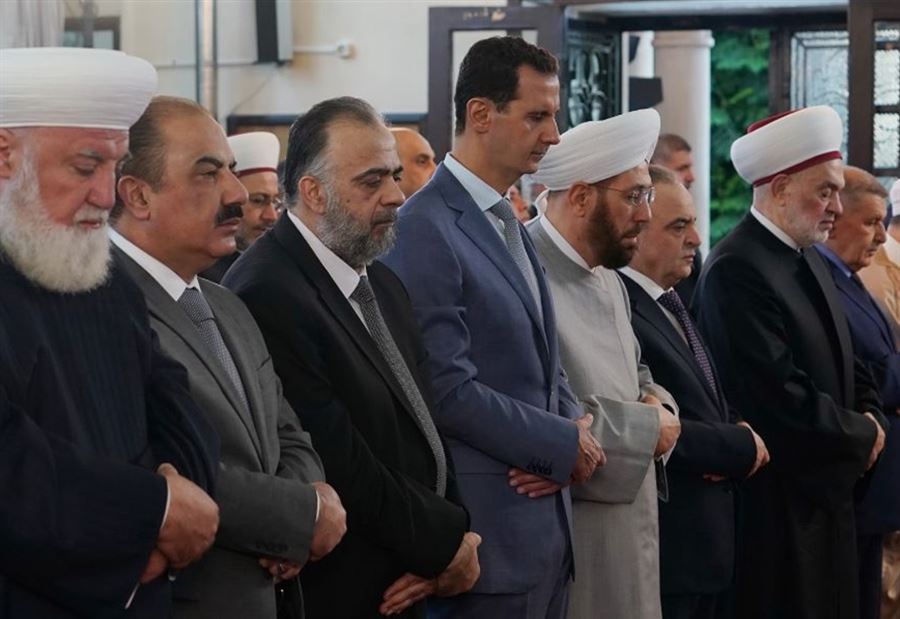 أدى الرئيس السوري، بشار الأسد، صباح اليوم الأحد، صلاة عيد الأضحى المبارك في رحاب جامع الأفرم بالعاصمة السورية دمشق.