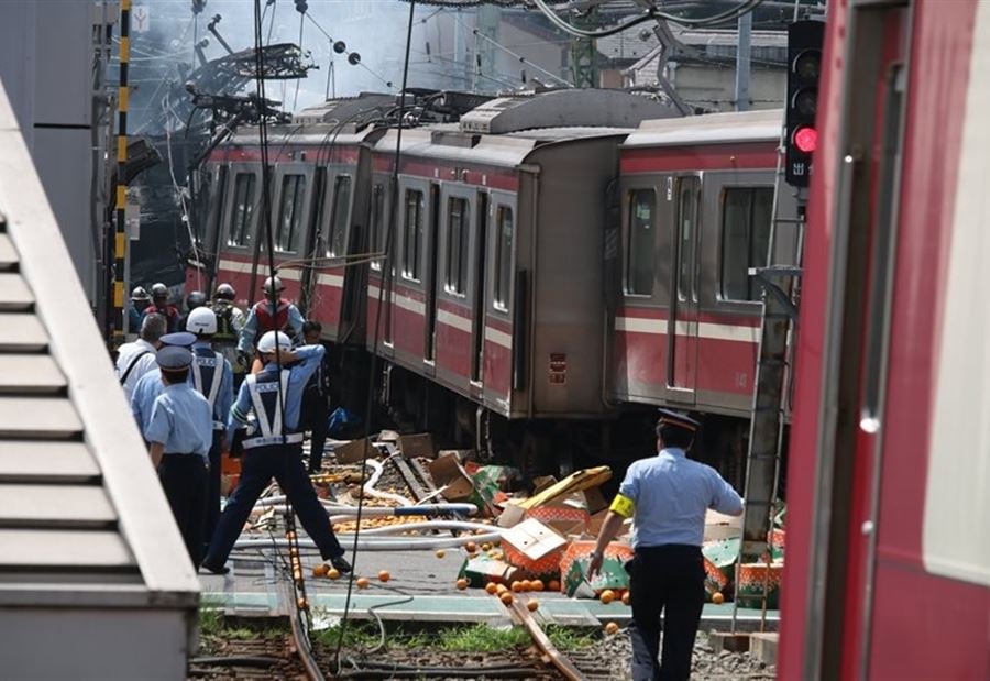 أصيب ما لا يقل عن 34 شخصًا، أحدهم في حالة خطرة، إثر اصطدم قطار سريع وشاحنة بمدينة يوكوهاما ثاني أكبر مدن اليابان، ما أدى إلى اشتعال النار في الشاحنة وإخراج نصف القطار عن القضبان.