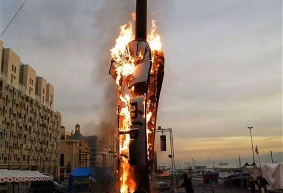 إنتشر عبر مواقع التواصل الإجتماعي فيديو يُظهر "لحظة إشتعال النيران بـ "مجسّم الثورة" في ساحة رياض الصّلح".