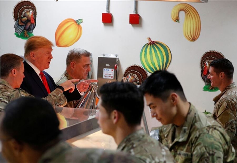 وزع الرئيس الأميركي، دونالد ترمب، أطعمة العيد على مجموعة عسكريين أميركيين في أفغانستان بمناسبة عيد الشكر الذي تحتفل به الولايات المتحدة.