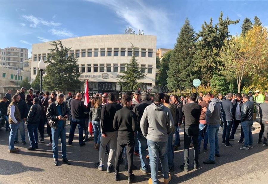 تجمّع العديد من البقاعيين أمام مصرف لبنان في زحلة تحت شعار "الليرة بألف خير"، رفضًا لسياسات المصرف المركزي تجاه الصرافين والتلاعب بالدولار.