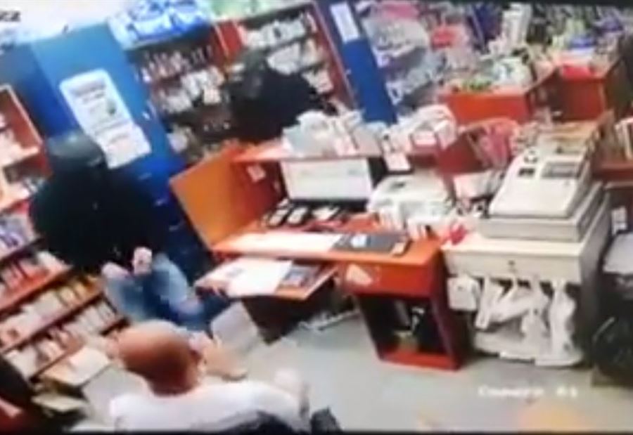ويُظهر الفيديو دخول 3 أشخاص مجهولي الهوية الى الصيدلية، وأجبروا صاحبها على فتح الصندوق وإعطائهم المال وبعض الأدوية.