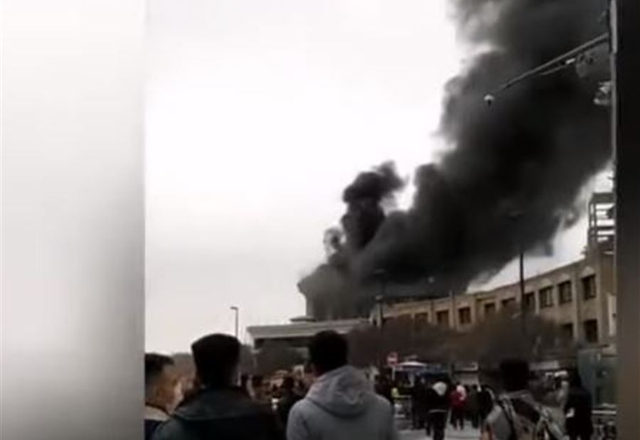ويظهر الفيديو تصاعد النيران وألسنة الدخان الكثيفة من سقف الفندق، فيما تجمع عشرات الإيرانيين لمشاهدة الحريق.