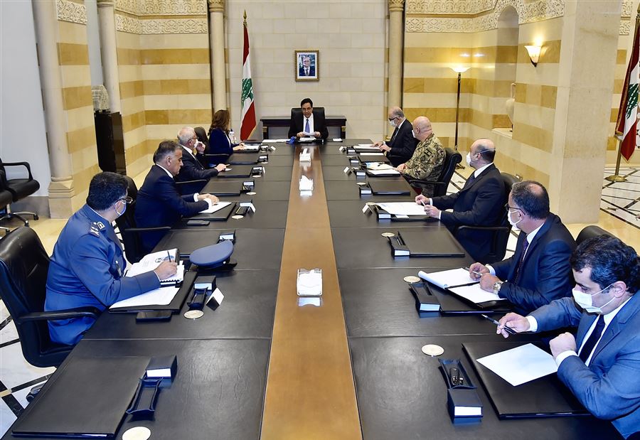 ترأس رئيس مجلس الوزراء حسان دياب صباح اليوم الثلاثاء في السرايا الحكومية اجتماعًا أمنيًا، حضره نائب رئيس مجلس الوزراء وزيرة الدفاع زينة عكر، وزير الداخلية والبلديات محمد فهمي، النائب العام التمييزي القاضي غسان عويدات، قائد الجيش العماد جوزيف عون، مدير عام قوى الامن الداخلي اللواء عماد عثمان، مدير عام الامن العام اللواء عباس ابراهيم، مدير عام امن الدولة اللواء طوني صليبا، مدير المخابرات العميد الركن طوني منصور ومستشار رئيس الحكومة الاستاذ خضر طالب.
