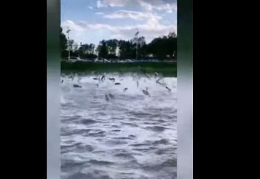واعتبرت القناة التي نشرت الفيديو أن مئات الأسماك تقفز من البحيرة شمالي الصين.