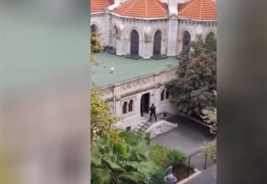 ورصدت الكاميرات عناصر الشرطة تدخل الكنيسة قبل سماع أصوات طلقات نارية.